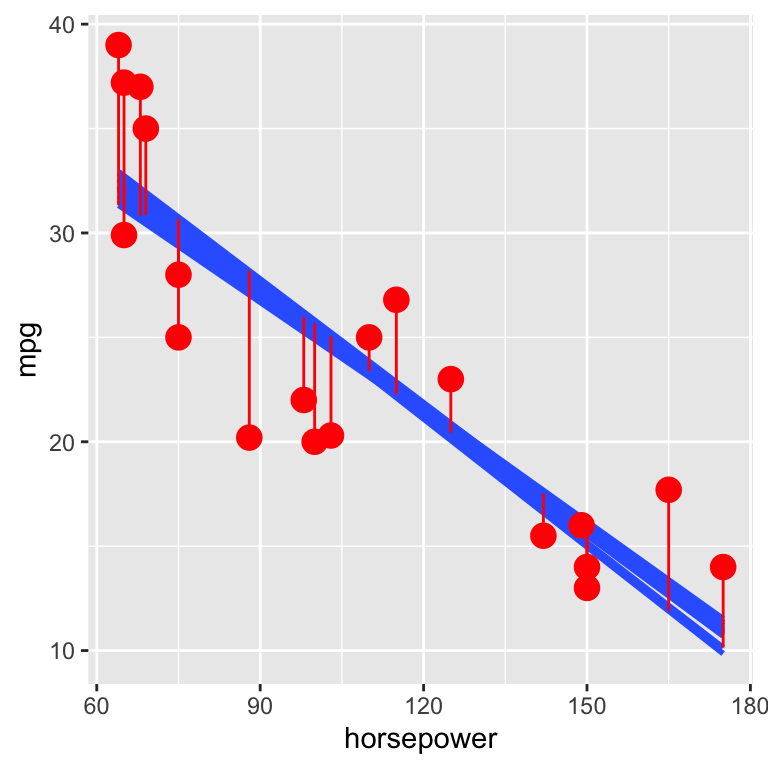 We’ll assume that the relationship between \(y\) and \(x\) can be represented by\[y = \beta_0 + \beta_1 x_1 + \beta_2 x_2 + ... + \beta_p x_p + \varepsilon\]
