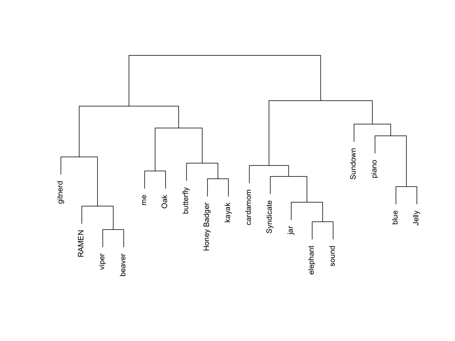 # Visualize the clusters on the dendrogram (change font size w/ cex)
